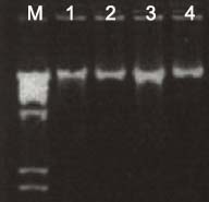100mg真菌組織經(jīng)FT Fungal DNA Kit純化后,基因組 DNA于1.0%瓊脂糖凝膠電泳圖