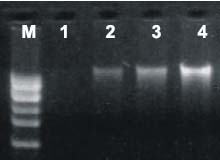 不同量的青蛙肝臟經(jīng)MiniElute DNA Kit提取 20μl洗脫,5μl于1%Agarose膠分析