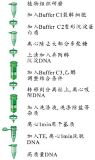 | 從<100mg新鮮植物組織中提取DNA ·15-60分鐘內(nèi)即可完成組織DNA的提取工作。 ·核酸純化柱無須平衡液處理,可吸附高達30 μg DNA。 ·可用50μl微量洗脫體積洗脫DNA。 產(chǎn)品原理 植物DNA提取試劑盒(Plant DNA Kit)采用獨特的緩沖液系統(tǒng),能夠高效地除去多糖多酚等,無需用到有機溶劑就能獲得高質(zhì)量的DNA。新鮮或干燥的植物組織(細胞)磨碎后經(jīng)裂解液裂解,蛋白質(zhì)、多糖、細胞殘片被沉淀去除;隨后異丙醇沉淀基因組DNA去除其余的雜質(zhì);調(diào)節(jié)結(jié)合條件然后轉(zhuǎn)移至GBC柱子中離心吸附DNA;兩次快速洗滌去除殘留的多糖類等雜質(zhì),最后DNA溶解于滅菌水或低鹽緩沖液中。 實驗結(jié)果 ![]() 100mg植物組織經(jīng)Plant DNA Kit 純化DNA后,基因組DNA于1.0%Agarose中電泳分析。 M: Marker 1:水稻葉片 2:菠菜葉 3:紫金花葉 4:花生葉片 可適用的分子生物學(xué)實驗 PCR、限制性酶切、Southern雜交等。 | ![]() |