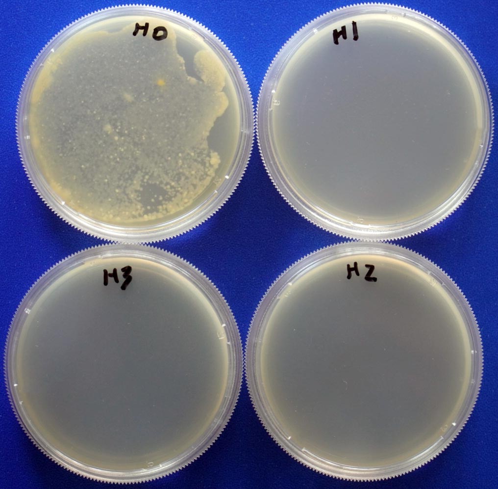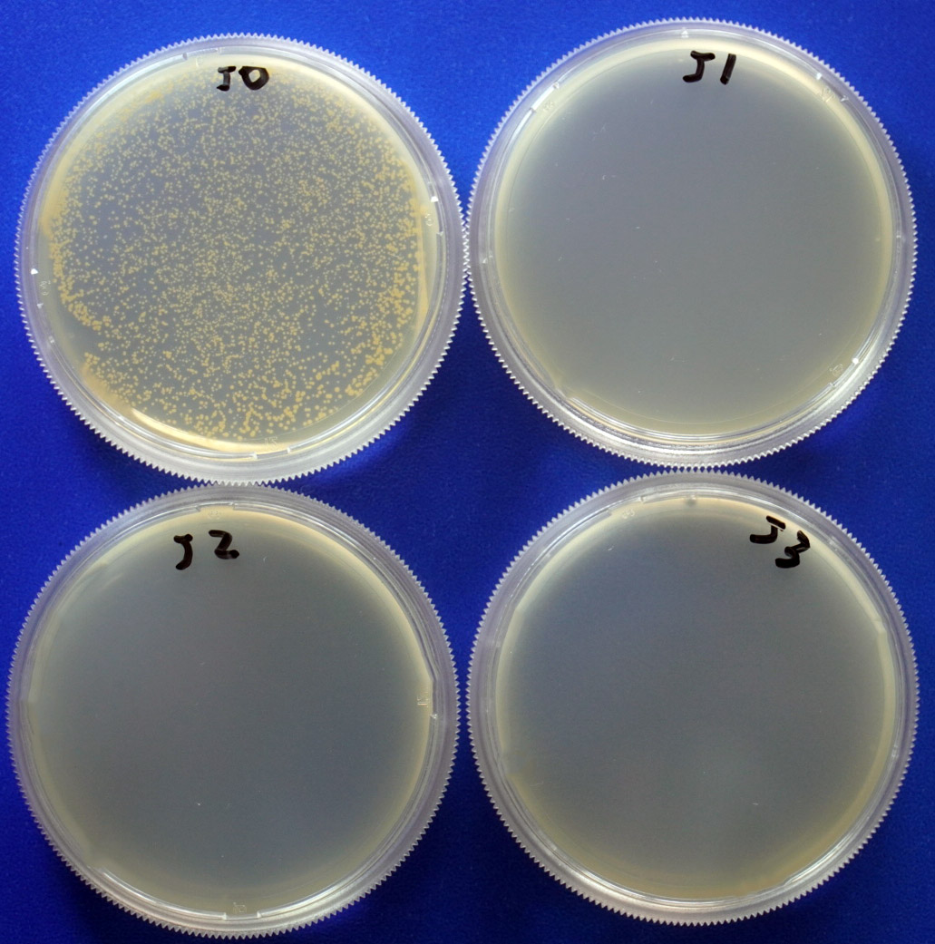2.1. 對金黃色葡萄球菌的抑制效果(細(xì)菌) 培養(yǎng)基高壓滅菌后,冷卻并添加一定量的Buffpro 300后到平板。凝固后接種同樣菌量的金黃色葡萄球菌,37℃培養(yǎng)18h。結(jié)果如下圖: