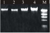 真菌樣品經(jīng)Hpure Fungal DNA Kit純化后,基因組 DNA于1.0%瓊脂糖凝膠電泳圖