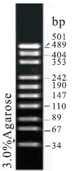 本產(chǎn)品是由pUC19質(zhì)粒經(jīng)MspI完全酶切得到的,包括501489404353242190147110896734bp DNA片段,適用于瓊脂糖或聚丙烯酰胺凝膠電泳中DNA條帶的分析。